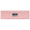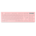 Bezdrátová klávesnice a optická myš v elegantním růžovém designu, určena pro domácí i profesionální použití v kancelářích a firmách.