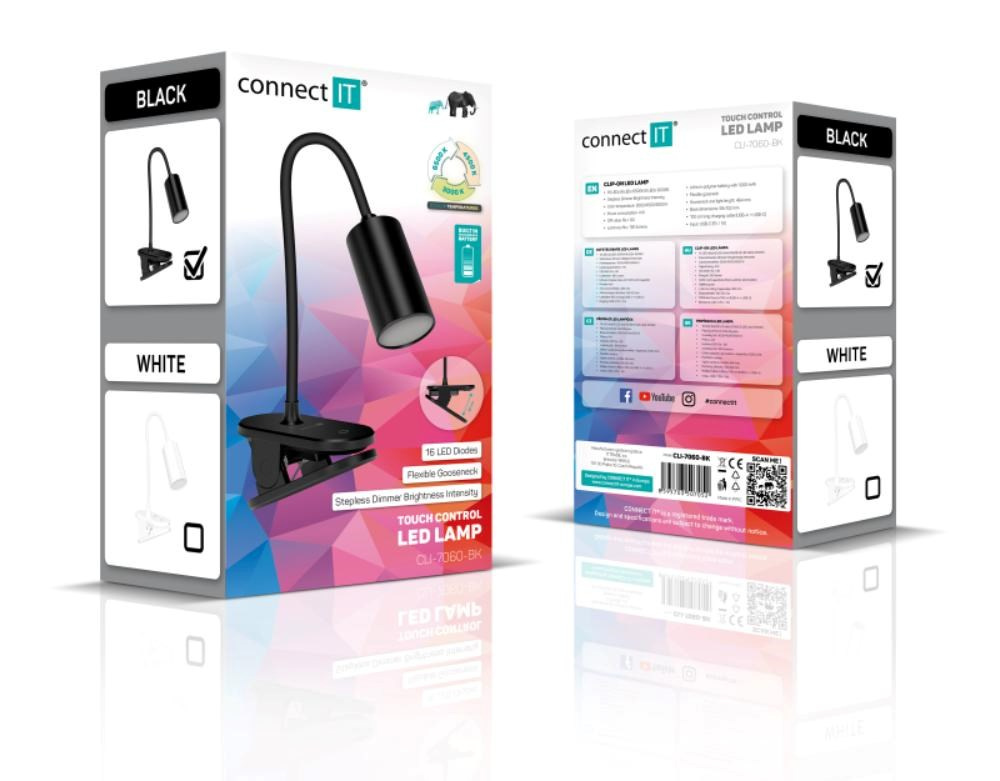 Popis CONNECT IT Stolní LED lampa CLIP 2 s klipem, černá