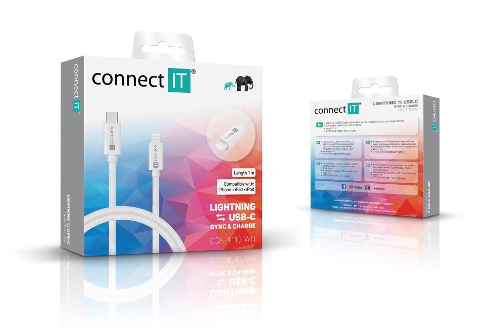 Datový kabel USB-C -> Lightning s délkou 1 m bílé barvy je určený nabíjení zařízení a umožňuje současně také přenášet a synchronizovat data, fotografie a hudbu všech zařízení zančky Apple. Jedná se o velmi kvalitní kabel s dlouhou životností a jemným designovým opletem.