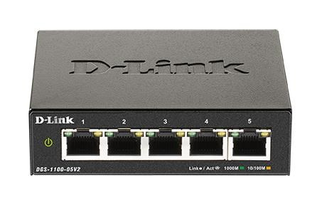 Popis D-Link DGS-1100-05V2 5-port Gigabit Smart Managed switch, fanless