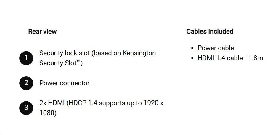 Rozlišení displeje:1920x1080 (Full HD); Úhlopříčka displeje ("):27; Výbava:VESA montáž; Rozhraní vstup:HDMI; HDMI počet:2; HDMI verze:1.4; Doba odezvy (ms):8; Formát obrazovky:16:9; Typ panelu:IPS; Jas (cd/m2):300; Kontrast:1:1000; Povrchová úprava displeje:Matný; VESA rozměry:100x100; Standardní záruka (roky):3.Více
