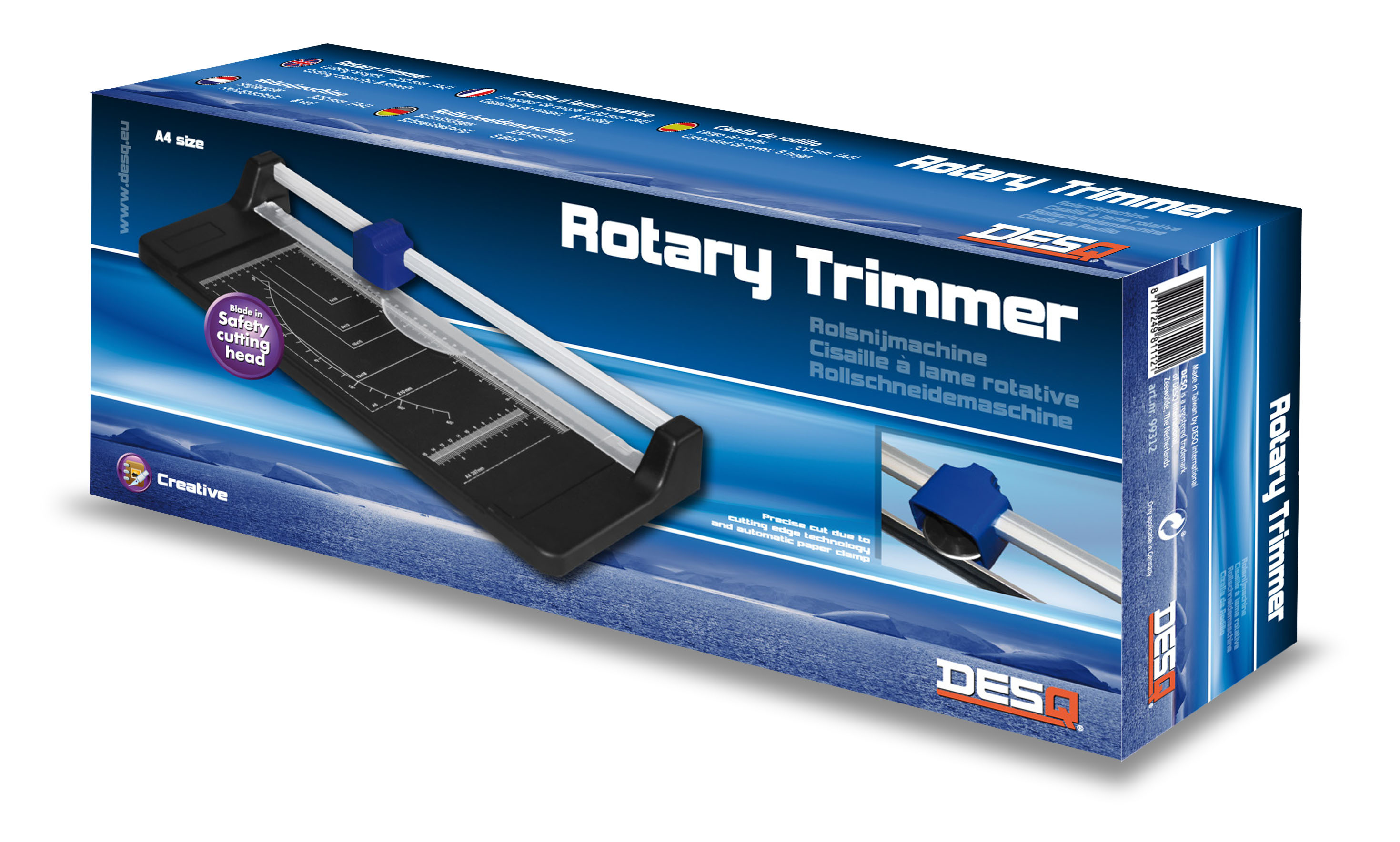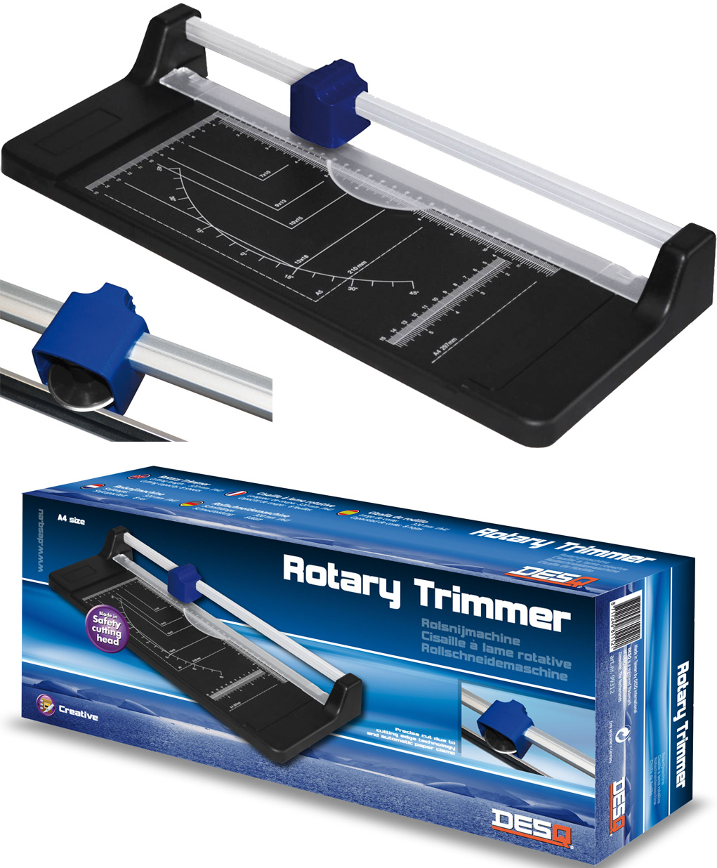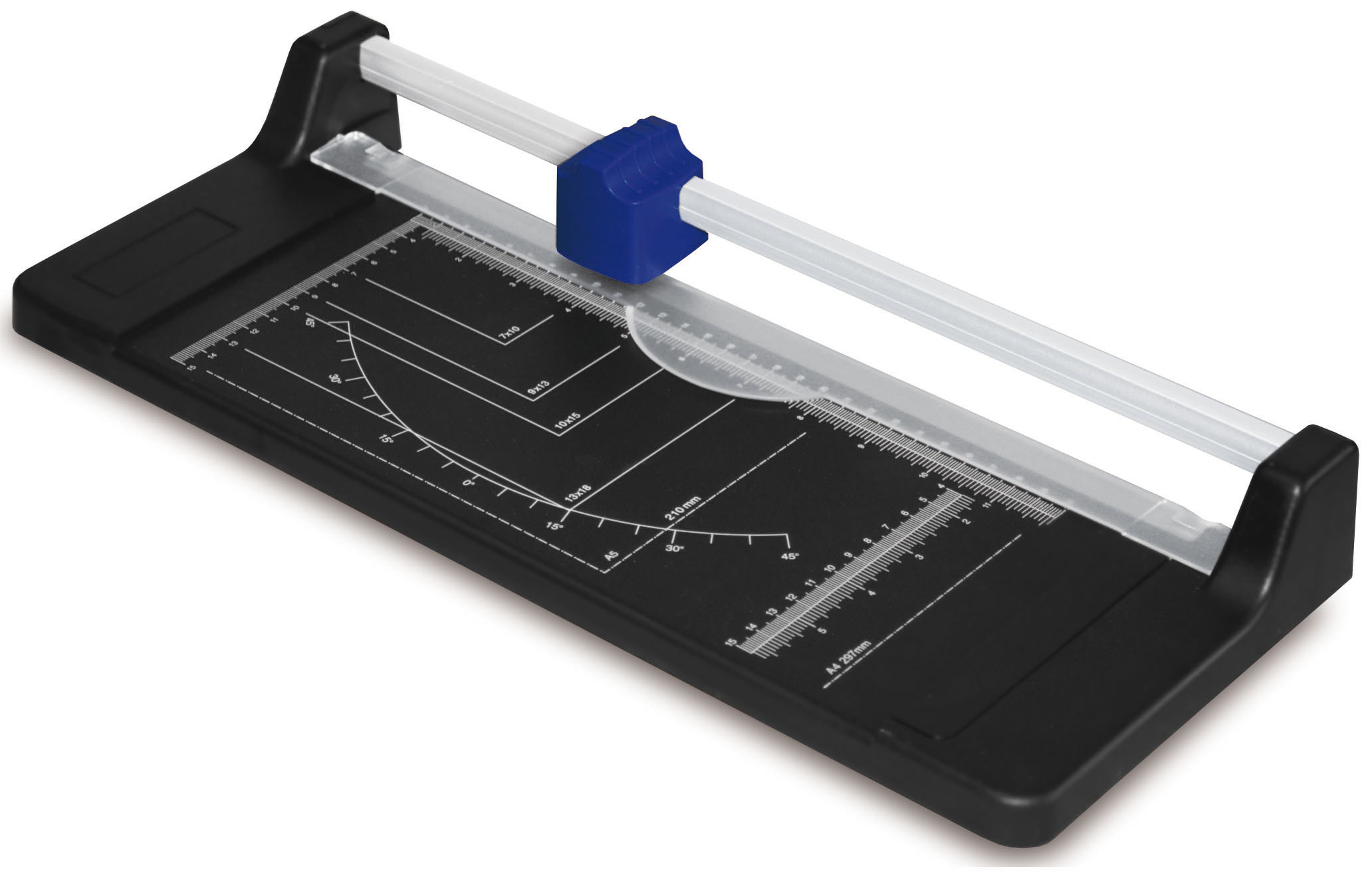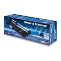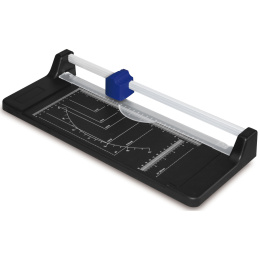 Odolná rotační řezačka pro přesné řezání papíru a kartonu. ? Rotační a spodní čepel pevně připevněné k pracovní desce ? Řez až 8 listů papíru najednou ? Vyobrazené standardní formáty A pro snadné zarovnání ? Úhlová stupnice pro přesné řezání pod úhlem Perfektní nástroj pro kancelář, školu i domácí kreativní projekty..