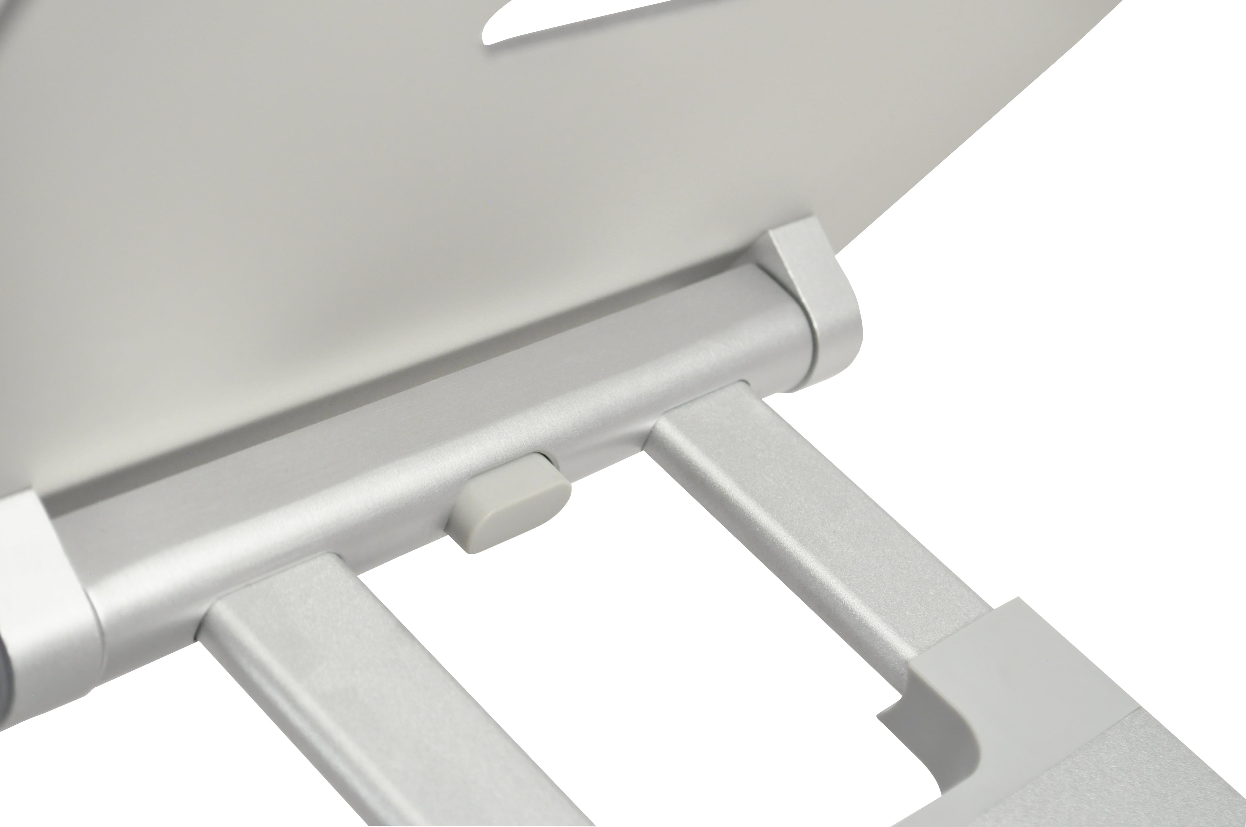 Tento plně nastavitelný stojan na notebook vám umožní umístit obrazovku do úrovně očí, ať už sedíte, stojíte nebo se nacházíte mezi těmito polohami. Je ideální pro zajištění ergonomicky správného držení těla při práci, jako řečnický pult při prezentacích nebo dokonce jako stojan na kuchařku při vaření. ? Plně nastavitelný jediným tlačítkem: snadná úprava výšky od 30 do 450 mm ? Zvedá obrazovku až o 45 cm pro optimální komfort sledování ? Platforma nastavitelná až do úhlu 70 ° pro nejlepší pozorovací úhel ? Výřezy v konstrukci podporují proudění vzduchu a ochlazují notebook ? Vyroben z pevné a odolné hliníkové slitiny ? Silikonové podložky a nožky pro stabilitu a ochranu proti skluzu S DESQ stojanem na notebook nastavíte displej do ideální výšky, což podporuje zdravé a ergonomické držení těla a pomáhá předcházet bolesti zad, krku a únavě očí..