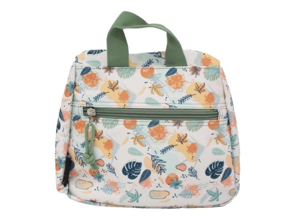 Kosmetická taška na zavěšení, v neutrální zelené barvě, s roztomilým lenochodem, je originální dětskou toaletní taškou na cesty. Velice pevná a odolná kosmetická taška, se spoustou kapsiček a odnímatelným zrcátkem, v pohodě pojme hygienické potřeby vaší holčičky nebo chlapce. Vodoodpudivý materiál umožní dětem používat tašku v koupelně i ve sprše. Díky háčku tašku jednoduše zavěsíte na háček nebo vodovodní baterii a děti mají své toaletní potřeby pohodlně po ruce..
