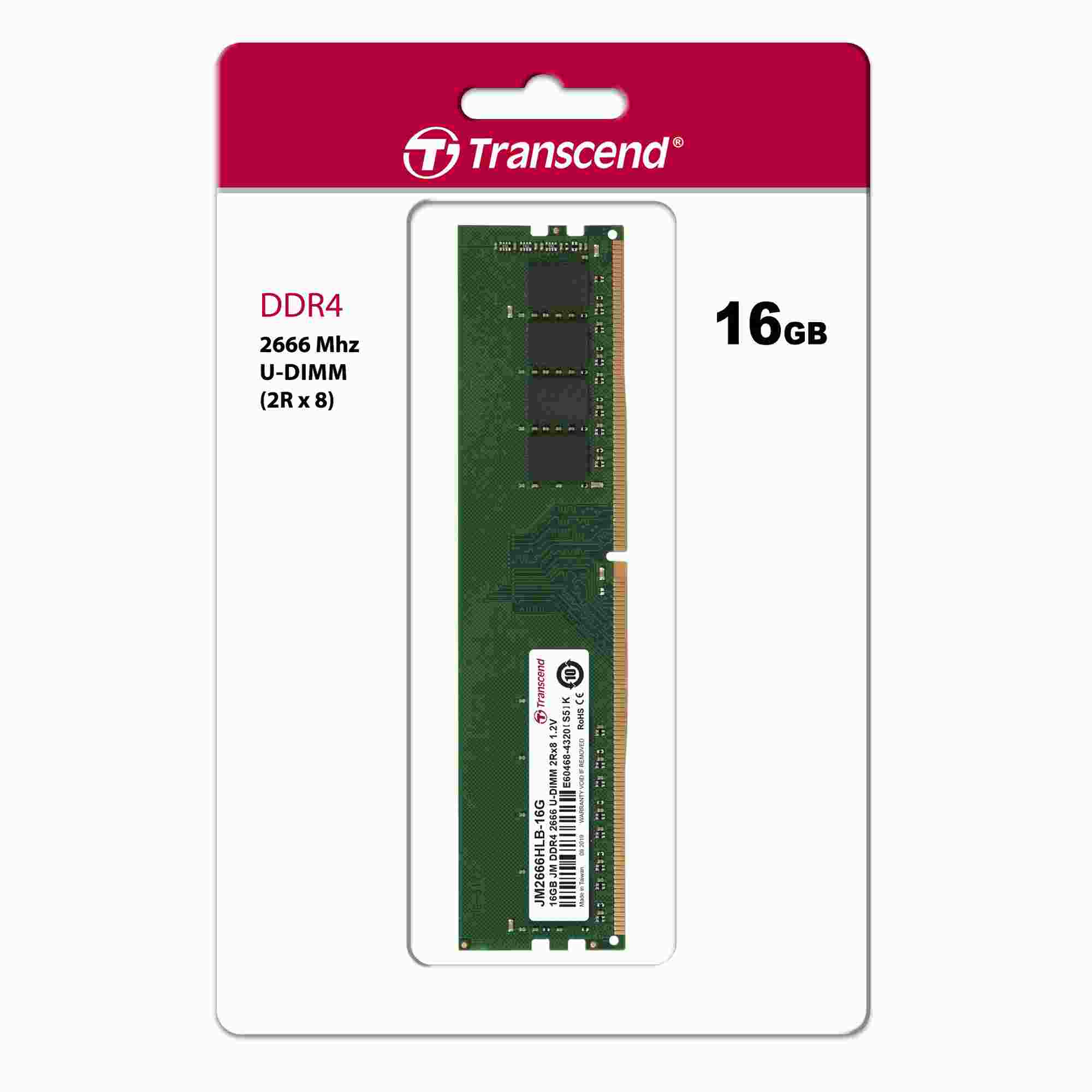 TRANSCEND DIMM DDR4 16GB 2666MHz 2Rx8 1Gx8 CL19 1.2V