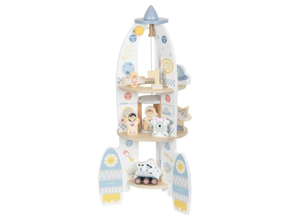 Dřevěná hračka v podobě rakety vynese vaše dítko do vesmíru, alespoň v jeho fantazii. Dřevěná raketa s doplňky a výtahem je zábavnou hračkou, se kterou mohou děti létat po domě či bytě, hrát si s astronauty přímo v raketě, vozit je výtahem stejně jako potřebné vybavení na misi. Hračka dokonale potrénuje motorické dovednosti, rozvíjí dětskou fantazii a kreativitu..