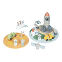 Dřevěná vesmírná základna se spoustou dřevěných prvků zavede děti do vesmíru. Hračka umožňuje dětem rozložit si základnu na Zemi i ve vesmíru, naplánovat start raketoplánu i vesmírnou misi na právě objevené planetě. Součástí balení jsou různé dopravní prostředky, satelity a astronauti..