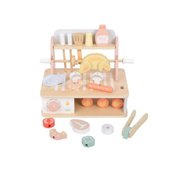 Dřevěný gril s bohatým příslušenstvím umožní dětem vyzkoušet si grilování bezpečným dětským způsobem. Uspořádat Barbecue slavnost bude hračkou a velkou zábavou. Žádná letní grilování se neobejde bez různých druhů masa, zeleniny a omáček, to vše v BBQ sadě najdete, včetně dalších doplňků pro přípravu masa a špízu. S dětskou BBQ sadou můžete grilovat celý rok, kdekoliv a v jakémkoliv počasí..