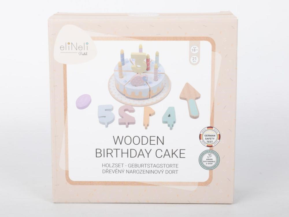 Dřevěný narozeninový dort se svíčkami a číslicemi umožní dětem slavit narozeniny klidně každý den. Dřevěná hračka v podobě krájecího dortu je skvělým doplňkem do dětské kuchyňky i obchůdku. S dřevěným dortem bude přichystání narozeninové oslavy pro oblíbeného plyšáka hračkou i velkou zábavou. Dort mohou děti porcovat a touto dobrotou pohostit všechny účastníky hostiny, prodávat jej v dětském obchůdku, cukrárně nebo kavárně..