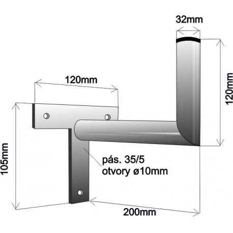 Držák antény na zeď, tvar T se vzpěrou, galvanický zinek, délka 25cm