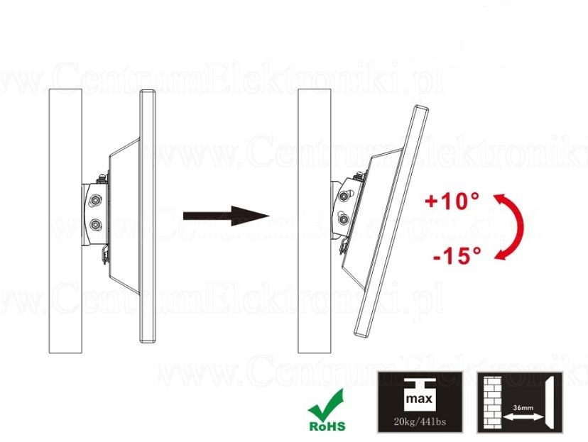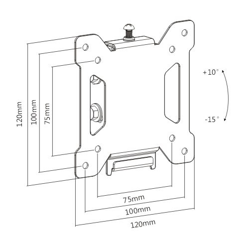 Držák monitoru Tv Fiber Novelty FN203T Sklopný držák na monitory a menší televize 13-30", VESA 75x75 a 100x100, náklon +10° až -15°, vzdálenost od zdi 36mm, nosnost 20kg, záruka 5 let. Nástěnný držák na monitory a menší televize 13-30", který umožní nastavení náklonu obrazovky +10°až -15°. Zavěšení monitoru nebo Tv je velmi snadné a rychlé, stejně tak i samotná instalace držáku na stěnu. Držák podporuje VESA standardy 75x75 a 100x100, nosnost 20kg. Barevné provedení černé, záruka 5 let. Držák na televize a monitory Fiber Novelty FN203T - sklopný, VESA standart 75x75 a 100x100 / drzakyastolky.cz Technické údaje: nosnost 20kg na televizory a monitory s úhlopříčkou 13" až 30" podporuje VESA standardy 75x75 a 100x100 umožňuje náklon +10° až -15° vzdálenost Tv od zdi 36mm konstrukce je ocelová velmi pevný a bezpečný nástěnný držák zajištění Tv nebo monitoru proti vysazení velmi snadná a rychlá montáž součástí balení je montážní materiál barevné provedení černé záruka 5 let Nástěnný sklopný držák na monitory a menší televize 13-30" Fiber Novelty FN203T Držák na Tv a monitory FN203T podporuje VESA standardy: VESA 75x75 VESA 100x100.