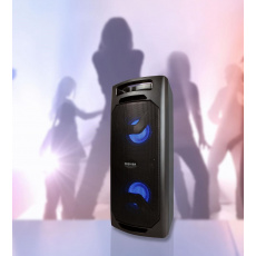 Bezdrátový přenosný party reproduktor, 4 nastavitelné Cyber LED efekty, dvoupásmové reproduktory, výkon až 50 W, technologie BeatBass, Bluetooth 5.3, automatické párování, baterie na až 20 h, USB-C, IPX6, variabilita formátů a připojení..