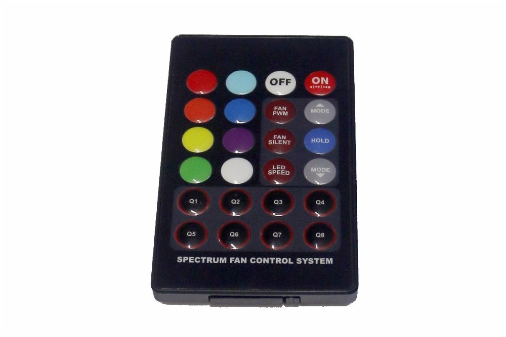 - dálkové ovládání (možnost volby barvy nebo efektu podsvětlení s možností vypnutí, řízení otáček ventilátorů s možností vypnutí)