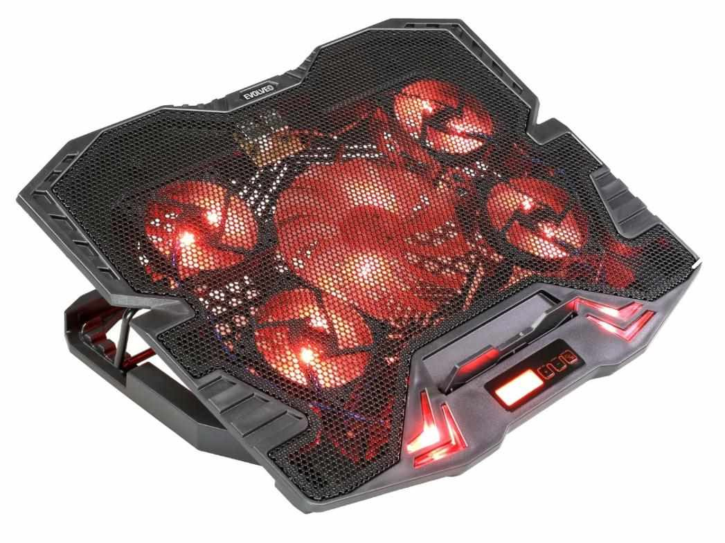 Herní polohovatelný chladící podstavec pro notebooky do velikosti 15.6". 1x 120 mm a 4x 60 mm ventilátor. 2x USB 2.0. Regulace rychlosti otáček ventilátoru, displej.