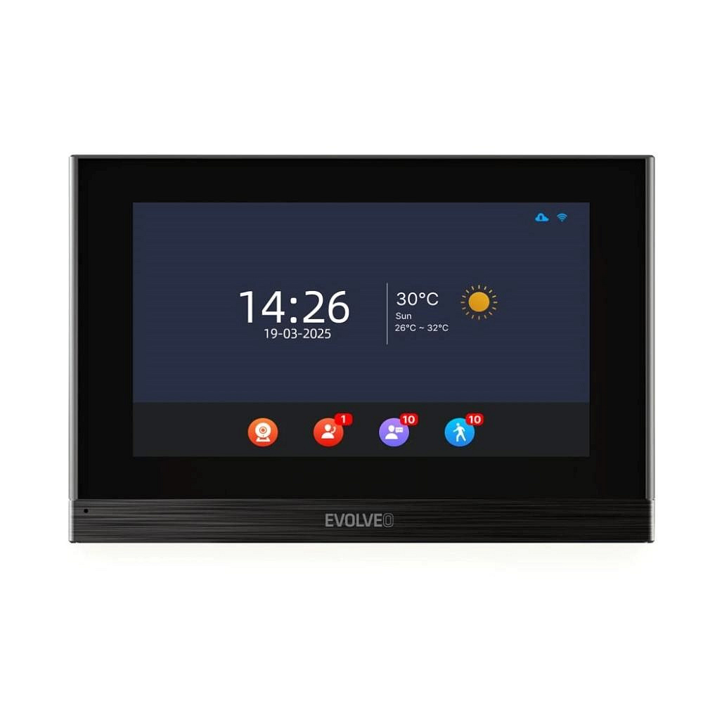 Interiérová jednotka není jen obrazovka pro přijetí hovoru. Sedmipalcový kapacitní dotykový monitor s rozlišením 1024 × 600 px funguje jako komunikační centrum celého systému.