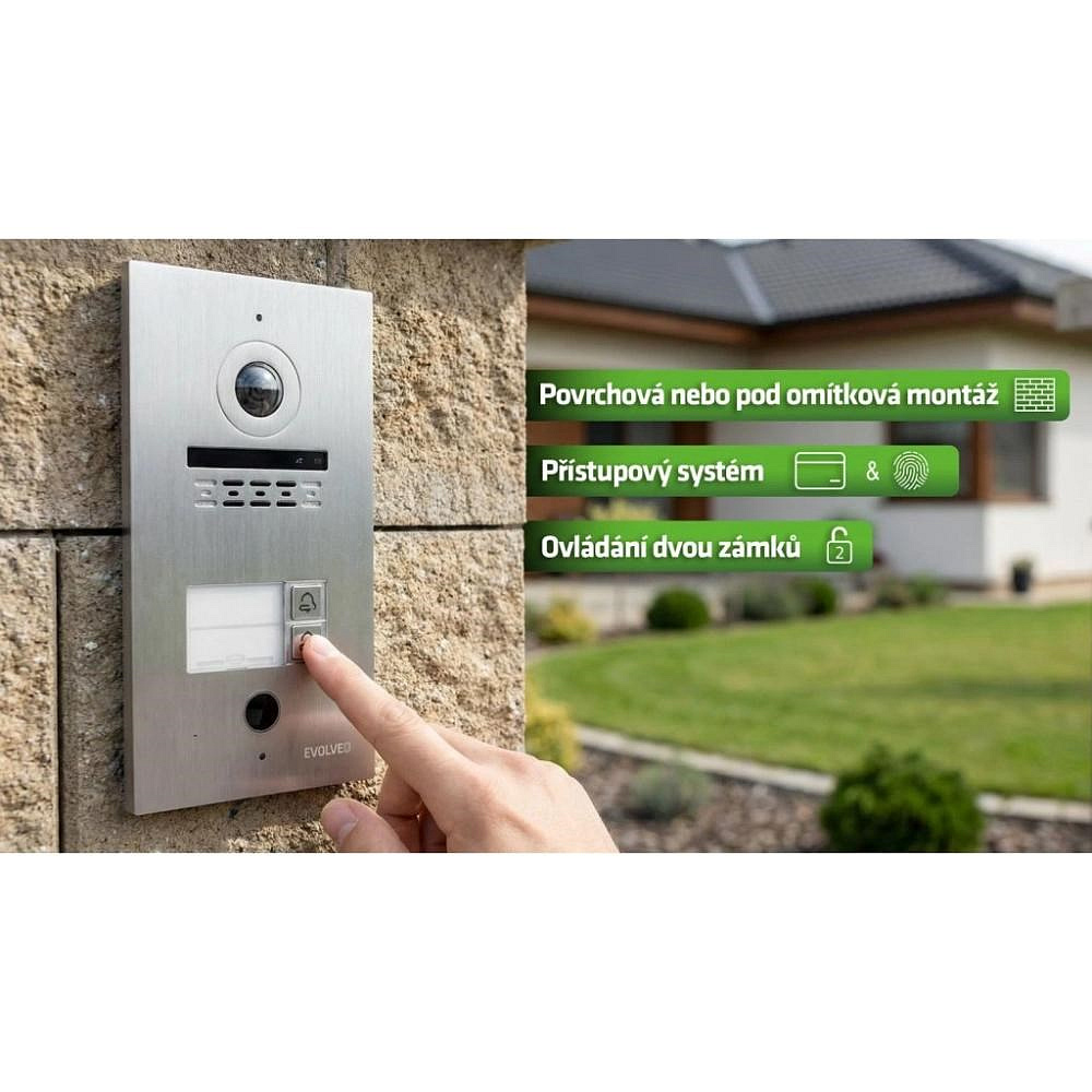 Venkovní panel lze instalovat zapuštěně pomocí přiložené instalační krabice, nebo povrchově s využitím montážního boxu EVOLVEO MSB. Díky tomu je systém vhodný jak pro novostavby, tak pro dodatečnou instalaci bez zásadních stavebních úprav.