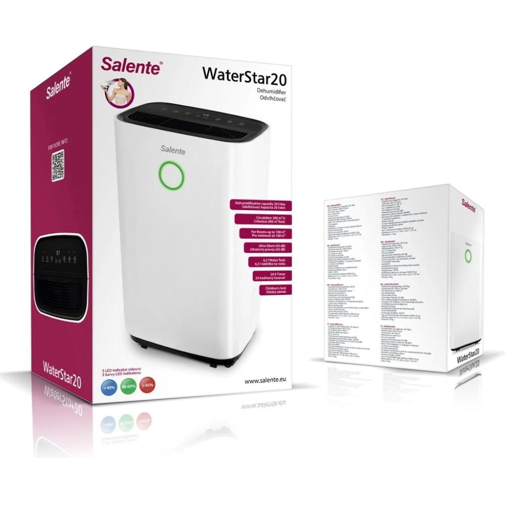 Salente WaterStar20 je skutečným hrdinou v boji s vlhkostí. Tento moderní odvlhčovač můžete využít v jakékoliv místnosti do velikosti 100 m2 – efektivně si poradí s problémy, jako jsou plísně, zatuchlý vzduch, orosená okna nebo nadměrná vlhkost způsobená přetápěním.
