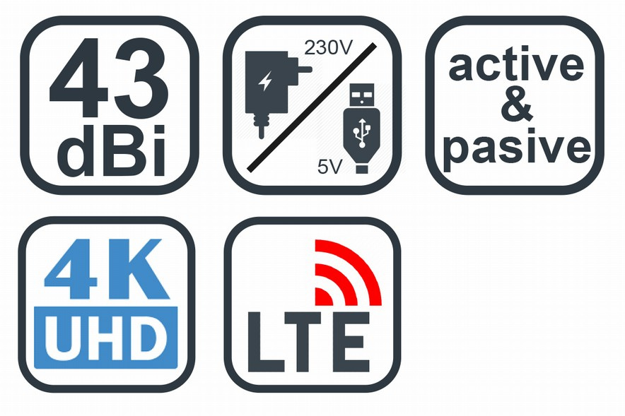 Elegantní pokojová anténa pro příjem digitální i analogové TV. Zesilovač antény lze napájet díky USB kabelu dvěma způsoby. Napájení pomocí adaptéru 230V a dále napájení z USB konektoru. Druhý způsob ocení uživatel, který chce sledovat TV např. na NB pomocí USB tuneru. Anténu lze přilepit sado 3M oboustranných pásek na zeď, nábytek, nebo umístit do podstavce.