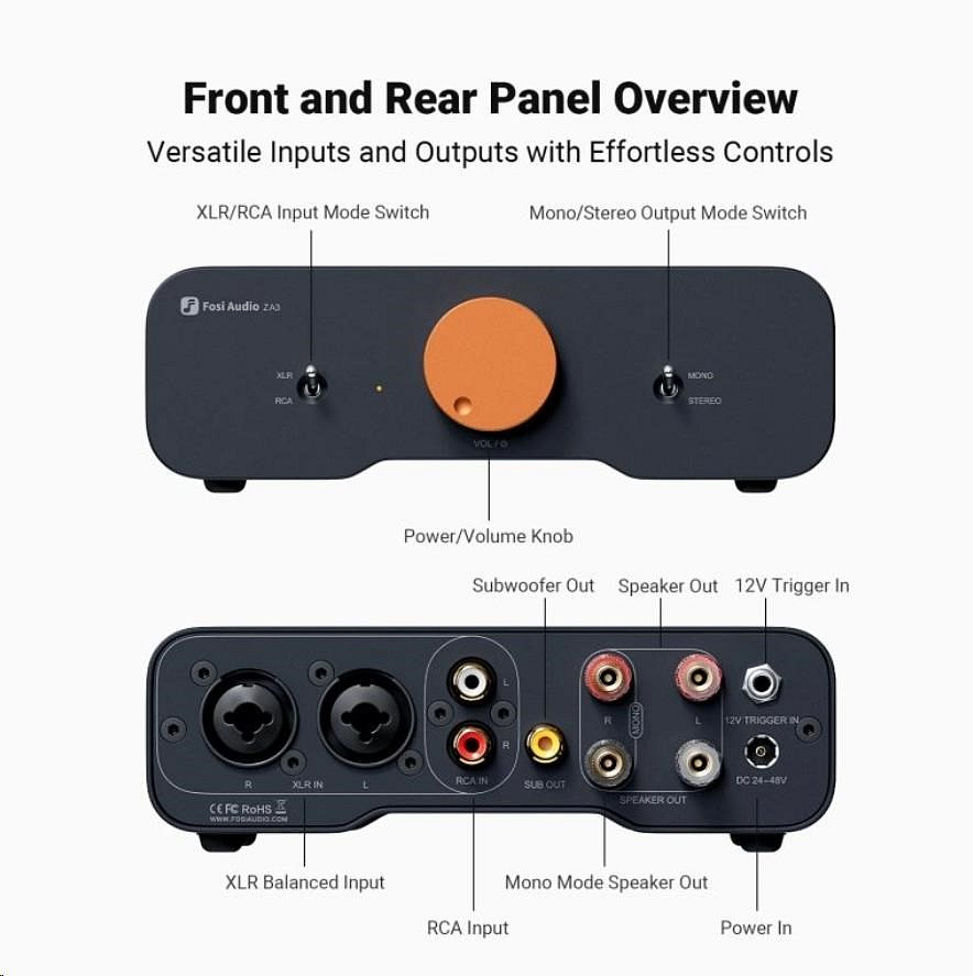 ZA3 byl navržen s ohledem na moderní audio systémy i profesionální využití. Disponuje RCA i XLR vstupy, prémiovými součástkami a pokročilým pasivním chlazením, které zajišťuje stabilitu při dlouhodobém provozu.