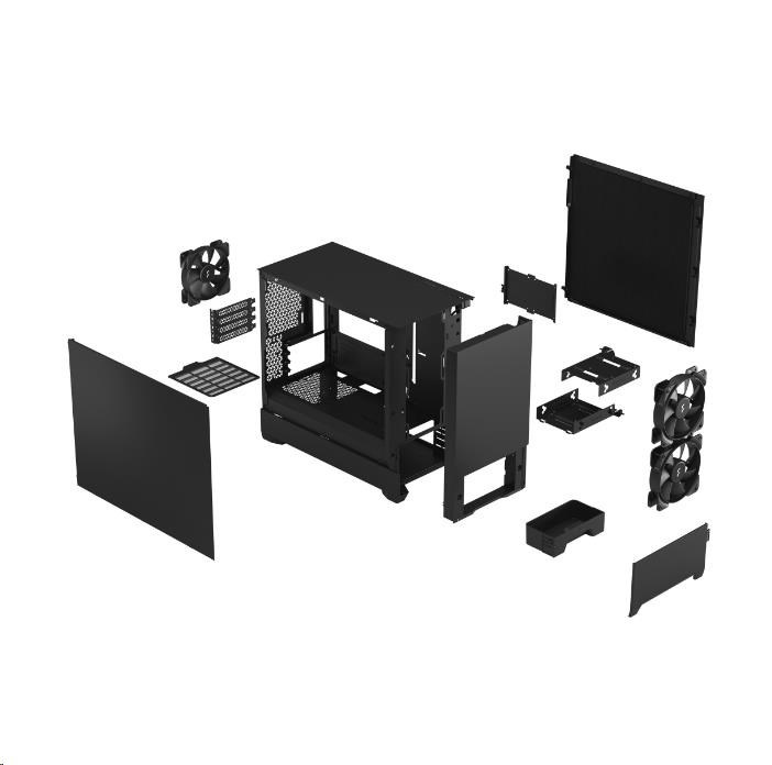 Popis FRACTAL DESIGN skříň Pop Mini Silent Black Solid, 2x USB 3.0, bez zdroje, mATX