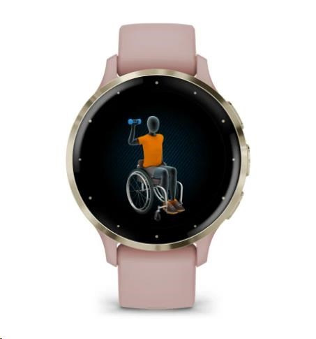 Popis Garmin Venu® 3S, Nerezová luneta Soft Gold, pouzdro Dust Rose, silikonový řemínek
