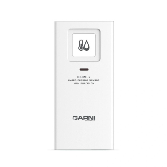 Sedmikanálové bezdrátové čidlo GARNI 055H 2GEN pro měření teploty a relativní vlhkosti, určeno pro Wi-Fi meteorologickou stanici GARNI 3015 Arcus, GARNI 3015 Arcus 2GEN, GARNI 2055 Arcus, GARNI 2055 Arcus 2GEN, GARNI 2040 Arcus, GARNI 2040 Arcus 2GEN, GARNI 1085 Arcus, GARNI 1025 Arcus, GARNI 1025 Arcus 2GEN, GARNI 975, GARNI 935PC, GARNI 925TGARNI 2060 Arcus, GARNI 3075 Arcus, hobby meteostanici GARNI 750, chytrý digitální teploměr s vlhkoměrem GARNI 419T, WiFi meteo bránu GARNI GTway Plus