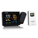 Meteorologická stanice se špičkovým inverzním barevným VA displejem s časem řízeným rádiovým signálem DCF-77, budíkem, měřením vnitřní teploty a relativní vlhkosti, bezdrátovým čidlem pro měření vnější teploty a relativní vlhkosti a projekcí času a vnitřní / venkovní teploty inverzní barevný VA displej o rozměrech 94 x 63 mm s možností stálého osvětlení 3 stupně jasu osvětlení displeje, možnost vypnutí osvětlení displeje s možností krátkodobého osvětlení na 15 s velikost číslic na displeji – čas 13 mm, datum, zkratka názvu dne 7 mm, vnitřní teplota a relativní vlhkost 10 mm, vnější teplota 20,5 mm, vnější relativní vlhkost 13 mm čas a datum řízené signálem DCF-77 s možností manuálního nastavení ikona příjmu signálu DCF-77 zkratka názvu dne 12ti, nebo 24 hodinový formát zobrazení času možnost nastavení časového pásma od -12 do +12 hodin budík s 2 budícími časy s funkcí opakovaného buzení (Snooze) nastavitelné od 5 do 60 minut budící signál - 10 sekund 1 pípnutí za sekundu, 10 sekund 2 pípnutí za sekundu, 10 sekund 3 pípnutí za sekundu a poté stále 4 pípnutí za sekundu střídavá projekce času a vnitřní a vnější teploty (teploty se střídají co 5 s) s možností otočení obrazu o 180°, možnost sklopení tubusu projektoru o 90° dopředu a dozadu barva projekce červená 2 stupně jasu a možnost vypnutí projekce 6 animovaných ikon předpovědi počasí (slunečno, polojasno, oblačno, srážky, silný déšť a sněžení) na základě sledování barometrického tlaku vestavěným barometrickým čidlem možnost nastavení výchozí ikony předpovědi počasí zobrazení hodnot vnitřní a vnější teploty a relativní vlhkosti paměť na maximální a minimální naměřené hodnoty teploty a rel. vlhkosti s automatickým mazáním v 0:00 hodin šipky tendence vývoje barometrického tlaku, vnitřní a vnější teploty a rel. vlhkosti 3 stupně indikace stavu vnitřní a vnější relativní vlhkosti indikace námrazy vnější teploty v rozsahu od -1°C do +3°C ikonou na displeji zobrazení teploty ve °C, nebo °F zobrazení hodnoty venkovního rosného bodu a teplotního indexu pro každý kanál možnost použití až 3 bezdrátových čidel GARNI 30H (jedno čidlo GARNI 030H je součástí dodávky) funkce automatického přepínání kanálů 5 ikon vnitřní tepelné pohody bezdrátový přenos hodnot vnější teploty a relativní vlhkosti na frekvenci 433 MHz ikona příjmu signálu bezdrátového čidla ikony slabých baterií napájení síťovým adaptérem a záložními bateriemi možnost postavení barva černá Bezdrátové čidlo GARNI 030H vlhkosti odolné displej o rozměrech 19 x 11 mm velikost číslic na displeji: teplota a relativní vlhkost 4 mm měření teploty a relativní vlhkosti 3 kanály maximální RF výkon 10 dBm (10 mW) možnost postavení a zavěšení barva bílá Obsah balení: 1 x hlavní jednotka GARNI 439 Line 1 x bezdrátové čidlo GARNI 030H 1 x síťový adaptér český, slovenský, německý, anglický, italský, polský a maďarský návod.