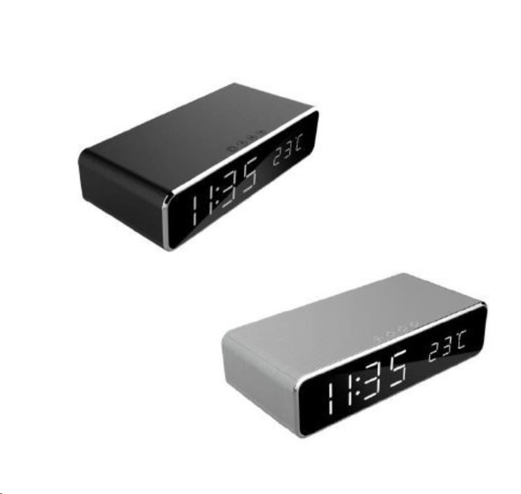 Popis GEMBIRD digitální budík s funkcí bezdrátového nabíjení, black/černá
