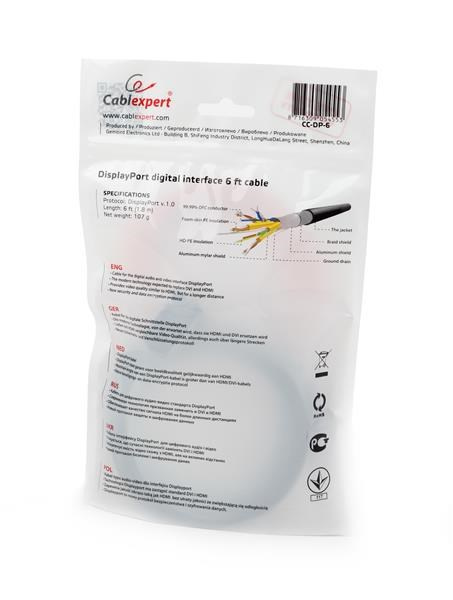 Popis GEMBIRD Kabel DisplayPort digital interface 1,8 m