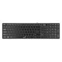 Elegantní drátová klávesnice v černém provedení disponuje tenkým profilem a komfortním jemným sklonem. Díky tomu poskytuje uživateli maximální pohodlí při každodenní práci. Předností jsou také multimediální klávesy pro ztlumení zvuku, otevření e-mailu apod. Klávesnice má speciální layout bez popisků na klávesách a je tak vhodná pro výuku desetiprstové hmatové metody psaní. Je vybavena samostatnou klávesou pro vyvolání AI asistenta Microsoft Copilot v systému Windows. Připojení k počítači je realizováno skrze USB port.