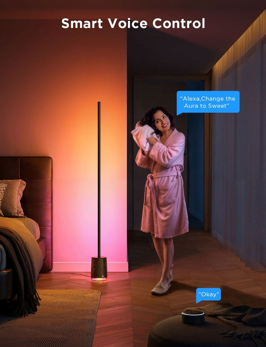 Govee Floor Lamp Pro vychází z modelu Lyra. Je to minimalistická, moderní podlahová lampa s BT reproduktorem, která poskytne dokonalou podívanou a perfektní zvukový zážitek. Lampa nabízí velmi slušných 2100 lumenů. Díky 324 diodám s technologií 4 v 1 RGBICWW, které lze rozdělit až na 54 nezávisle programovatelných segmentů dokáže lampa předvádět efektní podívanou jako perfektní barevné přechody, složité barevné vizualizace a skvělý jas a kontrast. dosahuje světlo ohromující intenzity. K dispozici je přes 16 milionů barev nebo bílá laditelná od 2200 do 6500 K. Floor Lamp Pro je také vybavena BT reproduktorem, takže k ní můžete připojit svůj telefon nebo TV a využít ji k přehrávání hudby nebo filmů. Dodatečně je lampa vybavena 29 presety bílého šumu, který vám pomůže se soustředěním, relaxací nebo usnutím. S funkcí DreamView můžete lampu synchronizovat s dalšími Govee světly a jedním stiskem tak tvořit atmosféru pro každou příležitost. Lampa měří 172 cm, ale zabírá minimální prostor a lze ji tak umístit doslova kamkoliv. Nejvíce jí to však sluší v rohu nebo u zdi, kde osvítí maximální prostor za sebou a vykouzlí na vaše zdi úžasně plynulé barevné přechody. Životnost lampy je u Govee standardních 25.000 hodin. Ovládání je možné aplikací Govee Home, Google Home, pomocí asistentů Google, Apple i Amazon. Pro maximální pohodlí v balení naleznete i klasický dálkový ovladač, který je kdykoliv v pohotovosti, připnutý přímo k lampě. Samozřejmostí jsou přednastavené scény, kterých je zde 81, několik režimů synchronizace s hudbou a pokud si ani tak nevyberete, čeká na vás DIY režim, který vám dá 100% kontrolu při které je jediný limit vaše fantazie.