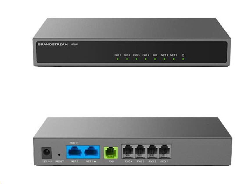 Gramdstream HT841 je FXO brána, umožňuje podnikům všech velikostí vytvářet snadno implementovatelné VoIP řešení. Tyto FXO brány nabízejí možnost bezproblémového připojení více míst a zařízení k jakékoli hostované nebo lokální IP PBX síti, aby nasazení bylo co nejjednodušší. Řada HT8x1 obsahuje porty FXO a FXS pro podporu volání do a z linky PSTN. Pokročilé telefonní funkce, snadný autoprovisioning a vynikající kvalitu hlasu umožňují, aby se řada HT8x1 stala ideální VoIP bránou pro firmy.