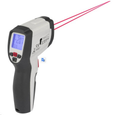 Rozsah měření od -35°C do +800°C, optika 10:1, emisivita nastavitelná od 0,1 do 1,0, duální laserové ukazovátko pro snadnější zaměření, možnost osvětlení displeje, automatické vypínání přístroje po 7 s.