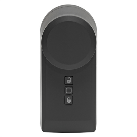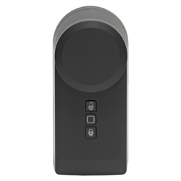 Bezdrátový inteligentní Pohon dveřního zámku v antracitové barvě (HmIP-DLD-A) určený k pohodlnému, motoricky poháněnému odemykání, zamykání a otevírání dveří je součástí systému chytré domácnosti Homematic IP.