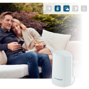 Všechny naměřené hodnoty jsou cyklicky přenášeny prostřednictvím Centrální jednotky (HmIP-HAP) do chytré mobilní aplikace Homematic IP a tak současně umožňují vzdálenou kontrolu a individuální řízení budovy v závislosti na aktuálních podmínkách teploty a vlhkosti. Pouhým pohledem na obrazovku smartphonu v aplikaci získá uživatel reálné a komplexní informace o lokálních naměřených hodnotách.