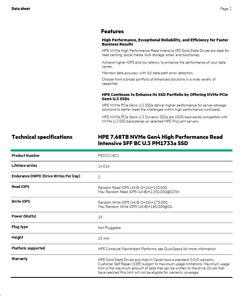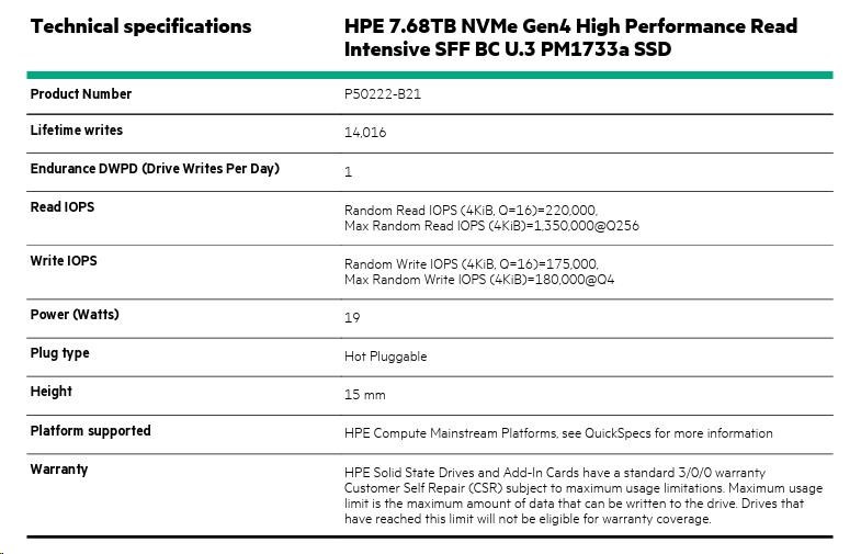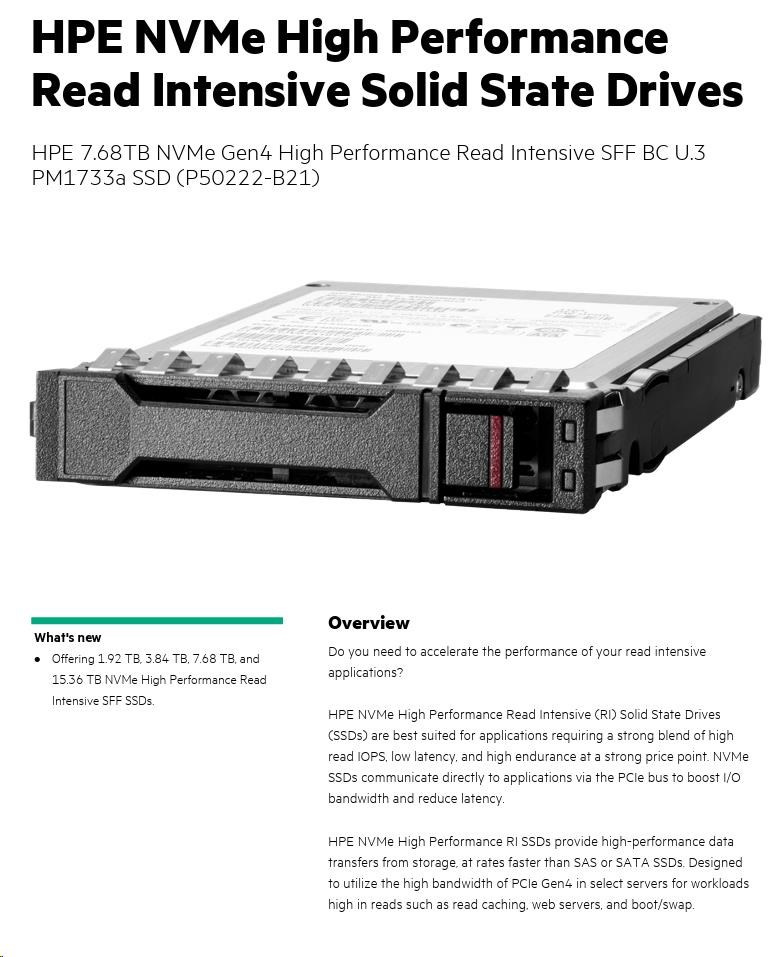 HPE 7.68TB NVMe Gen4 High Performance Read Intensive SFF BC U.3 PM1733a SSD P50222-B21 RENEW