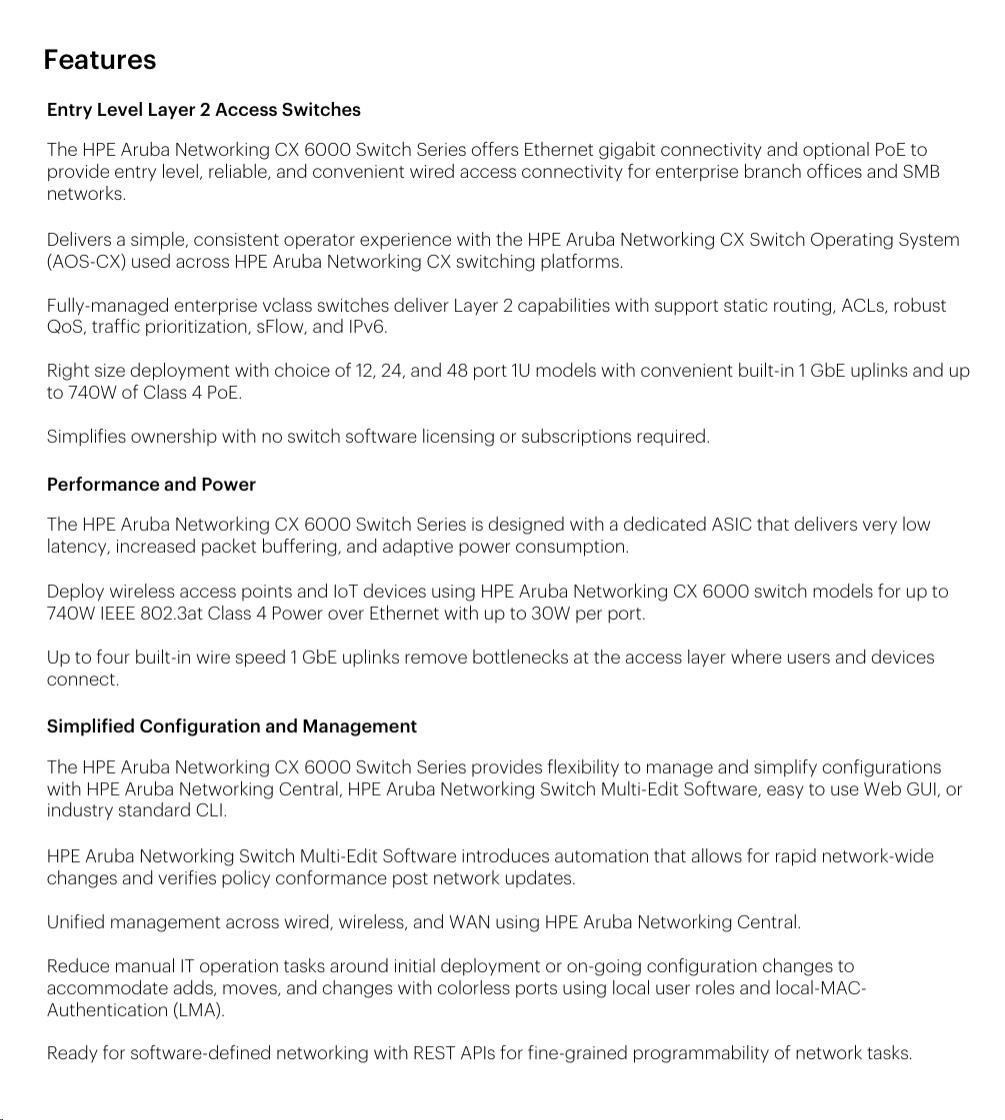 HPE Aruba Networking 6000 Switch Specifications