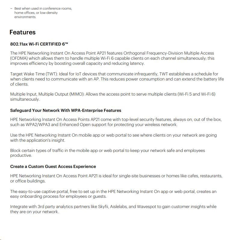 HPE Networking Instant On AP21 (EU) Dual Radio 2x2 Wi-Fi 6 Access Point Bundle with EU PSU