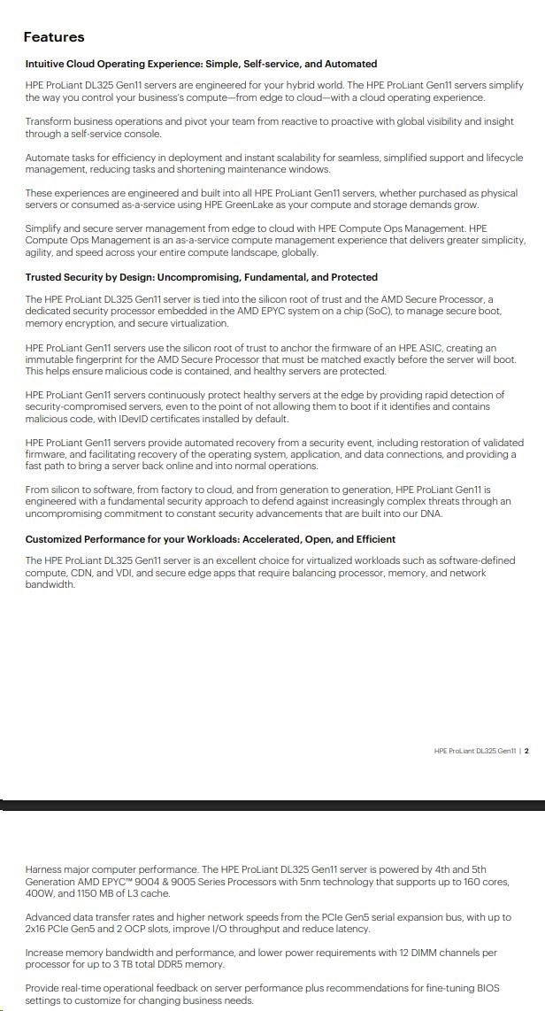 | Chassis | HPE ProLiant DL325 Gen11 8SFF Configure-to-order Server |