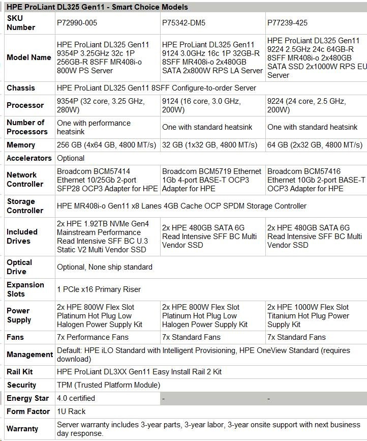 Popis HPE PL DL325g11 AMD EPYC 9224 (2.5G/24C) 2x32G (P50311) 2x480G 2x1000W MR408i-o/4G 8SFF 2p10G Smart Choice