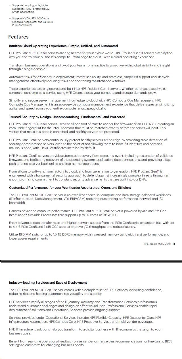 HPE PL ML110g11 4510 (2.4G/12C) NS204(2x480) 2x32G (P64706) MR408i-o 2x1000W 8SFF 2x1G NBD333 Smart Choice