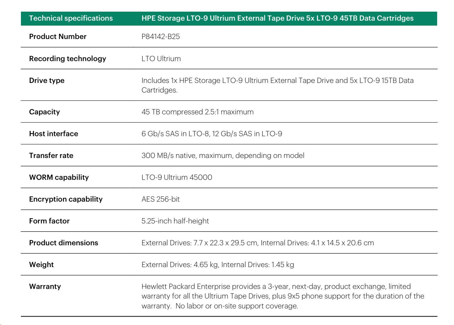 HPE Storage LTO-9 Ultrium External Tape Drive 5x LTO-9 (Q2079A) 45TB Data Cartridges Smart choice
