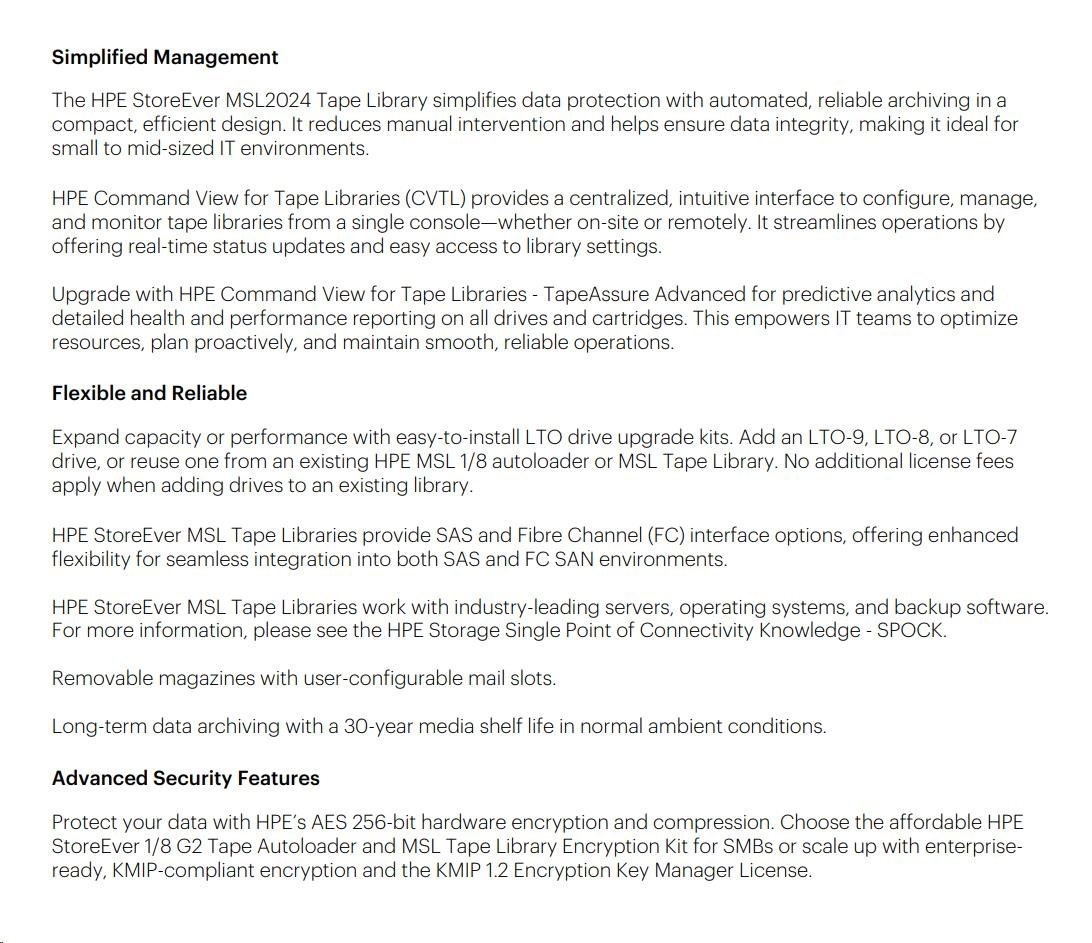HPE Storage MSL2024 Tape Library 1x MSL LTO-9 SAS Drive 15x LTO-9 45TB Data Cartridges
