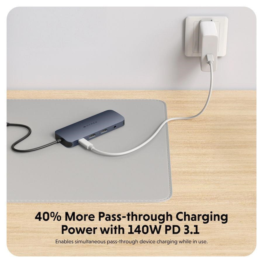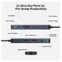 Hyper EcoSmart™ Gen.2 nabízí vše, co potřebujete k plnohodnotné práci na nejnovějším MacBooku Pro nebo Windows PC. Váš jediný boční port rozšíří až na 11 konektorů, kterým dominují hned dva USB-A porty, které umožňují průchozí napájení a plnou rychlost přenosu dat až 10Gbps a 5 Gbps, nebo připojit rovnou dva externí monitory. Můžete tak současně dobíjet MacBook a zároveň připojit například 2 monitory. Mezi další výbavu patří 2 x USB-C 10 Gbps, micro SD 312 MB/s, SD 312 MB/s, Gigabit-Ethernet, 3.5mm Audio Jack Combo, USB-C Power Delivery 140 W PD 3.1.