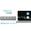 Přenos dat je rychlý a spolehlivý díky portům USB-C 3.2 Gen 1 a Gen 2 s rychlostí až 10 Gbps. Při připojení 100W PD zdroje získá vaše zařízení až 85 W energie, zatímco hub si ponechá 15 W pro vlastní provoz.