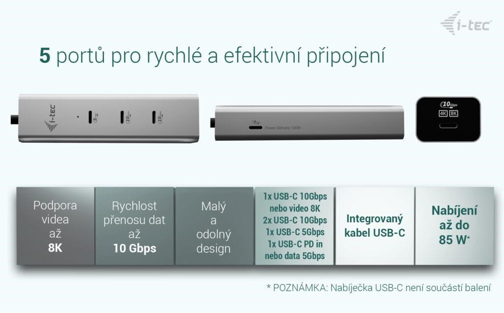 1× USB-C PD vstup 100 W / Data USB 3.2 Gen 1 (5 Gbps)