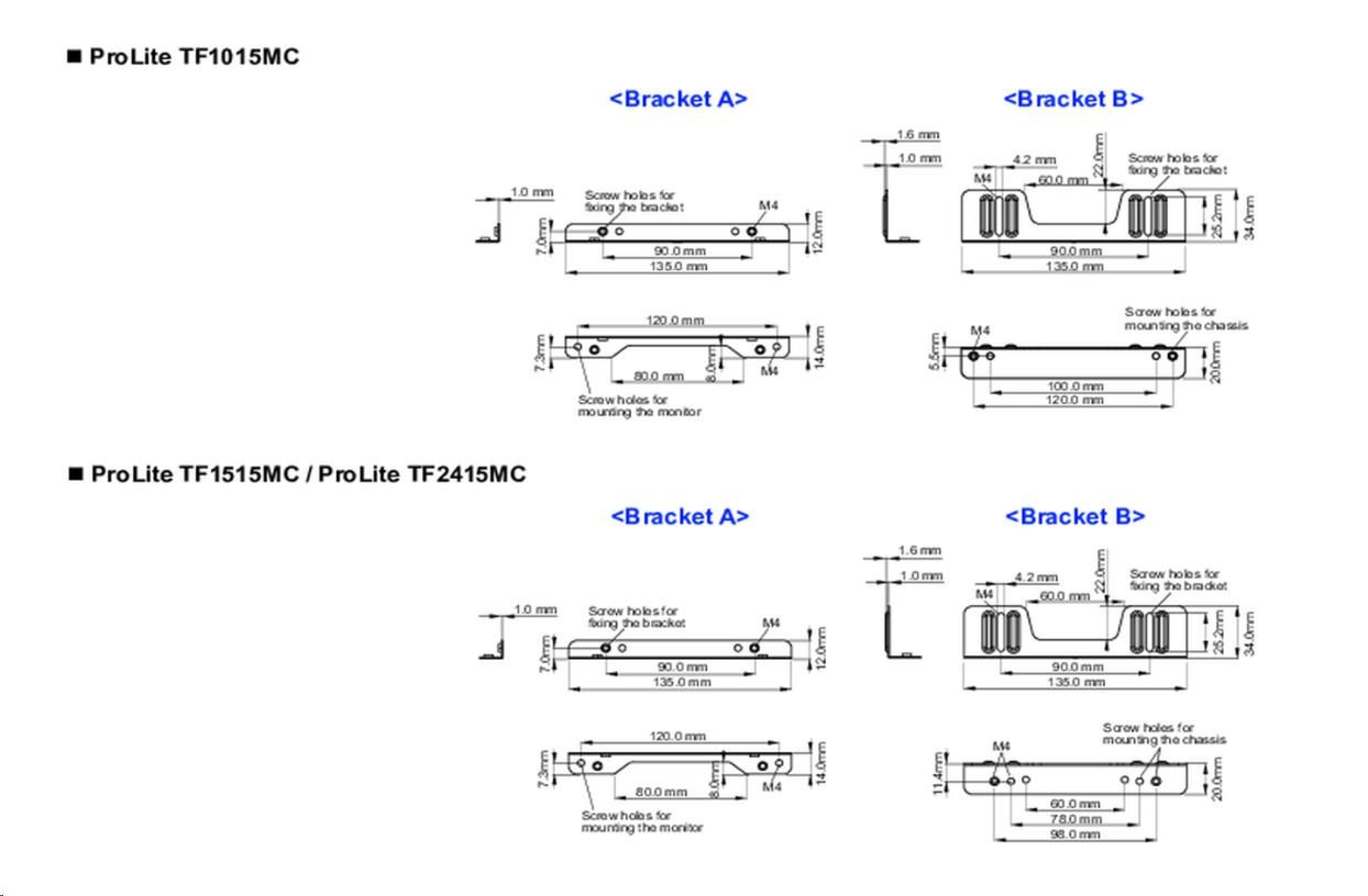 Sada montážního držáku pro dotykové obrazovky iiyama TFxx15MC s otevřeným rámem. Toto řešení je kompatibilní s následujícími modely iiyama: TF1015MC,TF1515MC,TF2415MC..