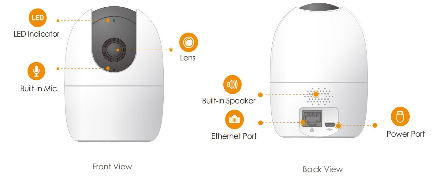 IP kamera - vnitřní, s maximálním rozlišením videa 2688 × 1664 px, hybridní noční vidění s maximálním dosvitem 10 m, 87° zorný úhel, motorická rotace, pevný objektiv, s detekcí pohybu a postav/y, vestavěný mikrofon a vestavěný reproduktor, notifikace do mobilu, typ úložiště SD a cloud, RJ 45 LAN rozhraní, připojení přes WiFi 2,4 GHz, ke komunikaci slouží aplikace výrobce, rozměry: 109,2×96×95 mm.Více