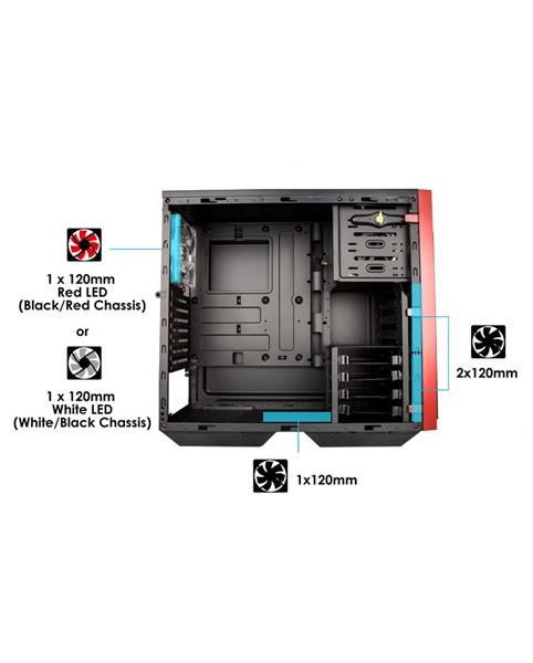 Provedení skříně:Midi Tower; Výkon zdroje (ve W):0; Vybavení PC skříně:Bez integrovaného zdroje, Přední Audio panel, Přední USB panel, Průhledná bočnice; Barva skříně:Černá; Počet pozic 3.5" (HDD):4; Počet pozic 5.25":1.Více