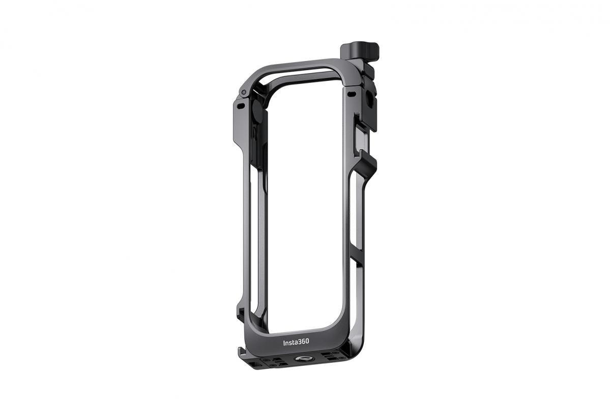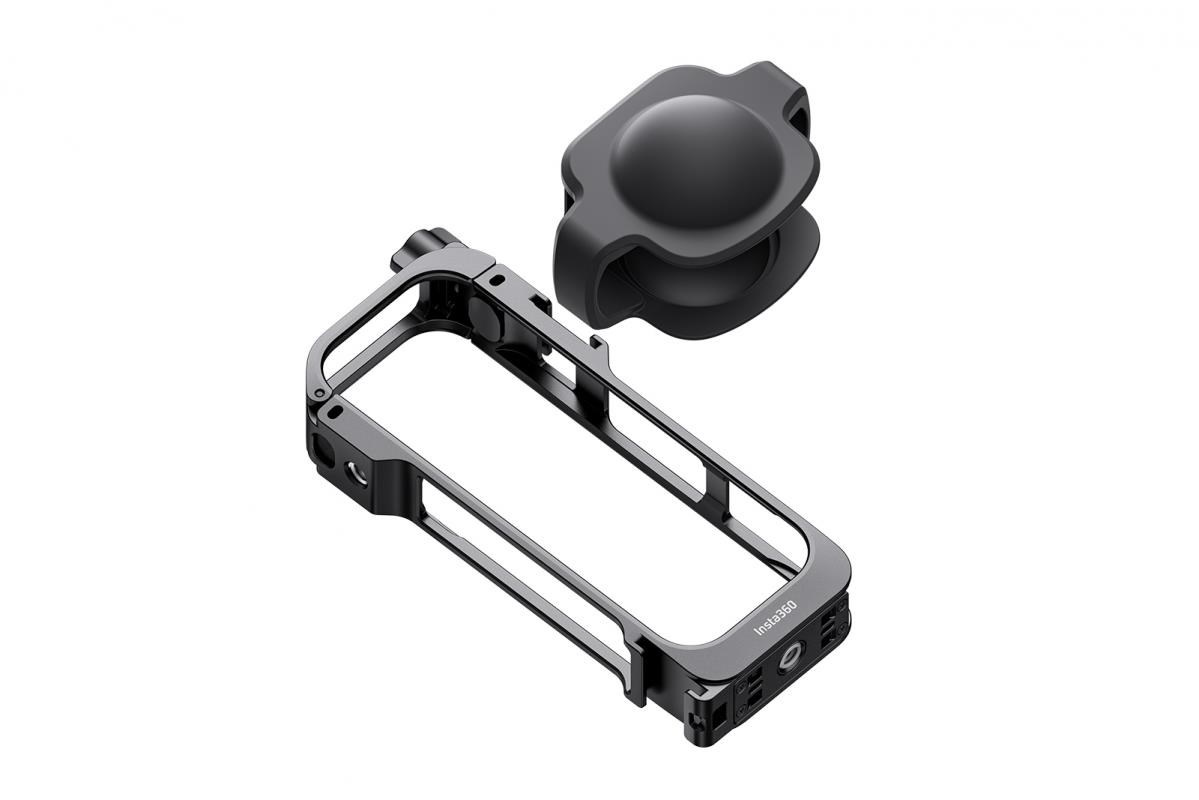 Lehký kovový rámeček pro příslušenství pro kameru Insta360 X5 poskytuje plnou ochranu kamery. Disponuje rychloupínacím bodem, dvěma držáky na příslušenství a závity 1/4". Součástí je kvalitné ochrana mikrofonu pro čistý zvuk i při větru..